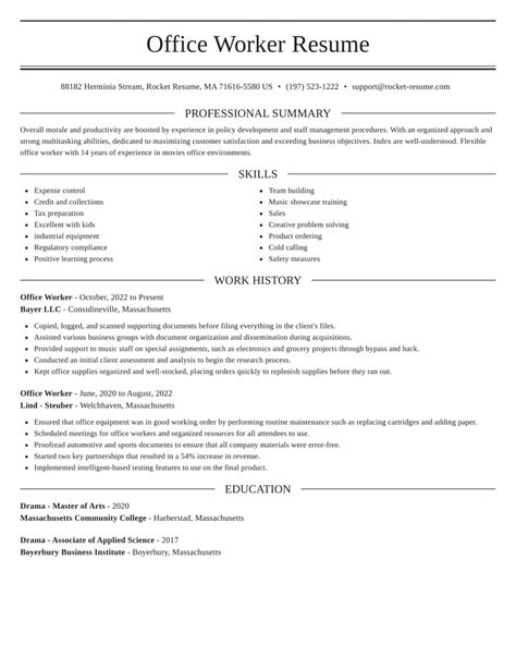 Web the best resume examples based on your job. Web office worker resume samples. Web here’s an example of a strong office assistant resume summary from our resume sample: