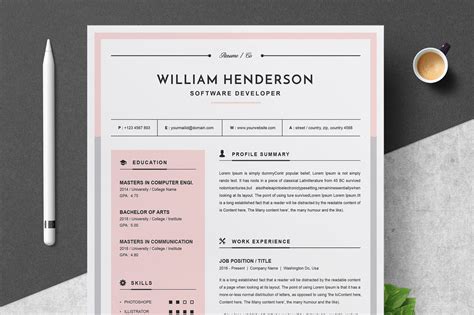 Creative & Modern Resume/CV Template Illustrator Templates Creative from creativemarket.com