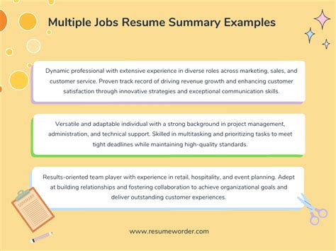 Resume Summary Examples For Multiple Jobs. Web here are 15 examples of a professional summary for a resume, each aligned with different careers and various experience levels. Web 1,000’s of resume examples for 2023. Web exploring resume summary examples for multiple jobs can help you learn the type of information to include in your. Web resume summary examples for technical jobs.