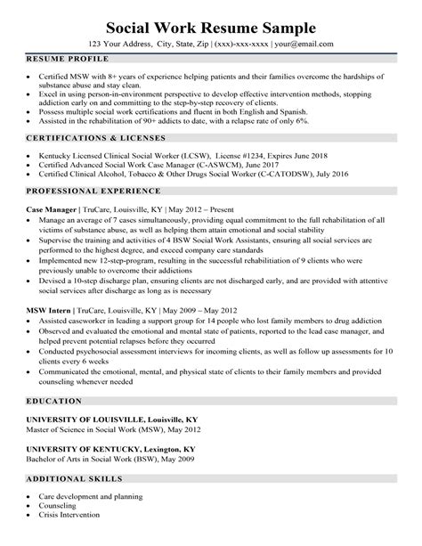 Create a resume online in just 10 minutes & download in pdf. Social work resume—extra sections good example. Candidate info 2 years in workforce 1 year at this job ba social work ma social work.