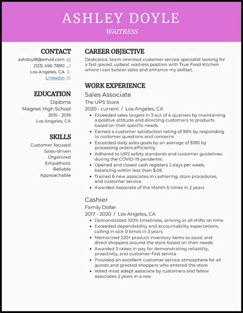 Looking to work as a waitress at just fries. When you have little or no serving experience, use the resume objective. Web to obtain the position of waitress with hometown pizza, inc. Web 14 waitress objectives and summaries found. To leverage the ability to ensure that every guest experience is. Web define your goals it should be clear what you want and how the role will help you to get it. Seeking first job as a member of the wait staff at calligan’s, able to take. Determine your goals the resume objective describes your ideal outcome for applying to server jobs.